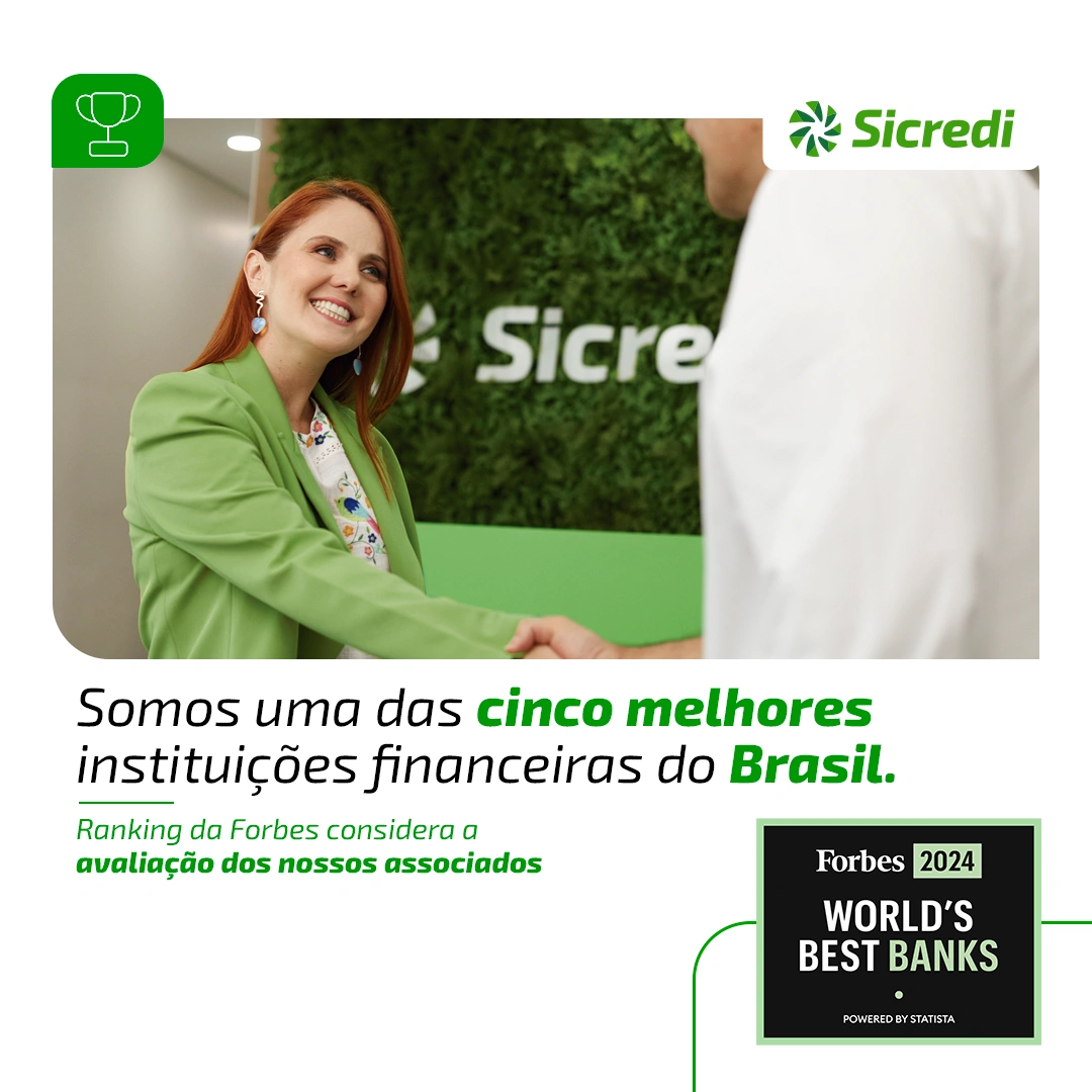 O Sicredi, instituição financeira cooperativa com presença em todo o país, conquistou a quinta posição do ranking brasileiro do World’s Best Banks 2024, realizado pela Forbes, em parceria com a empresa de estatísticas Statista. Na pesquisa, bancos de 33 países foram avaliados por clientes com base em uma série de critérios relacionados às suas experiências no relacionamento.