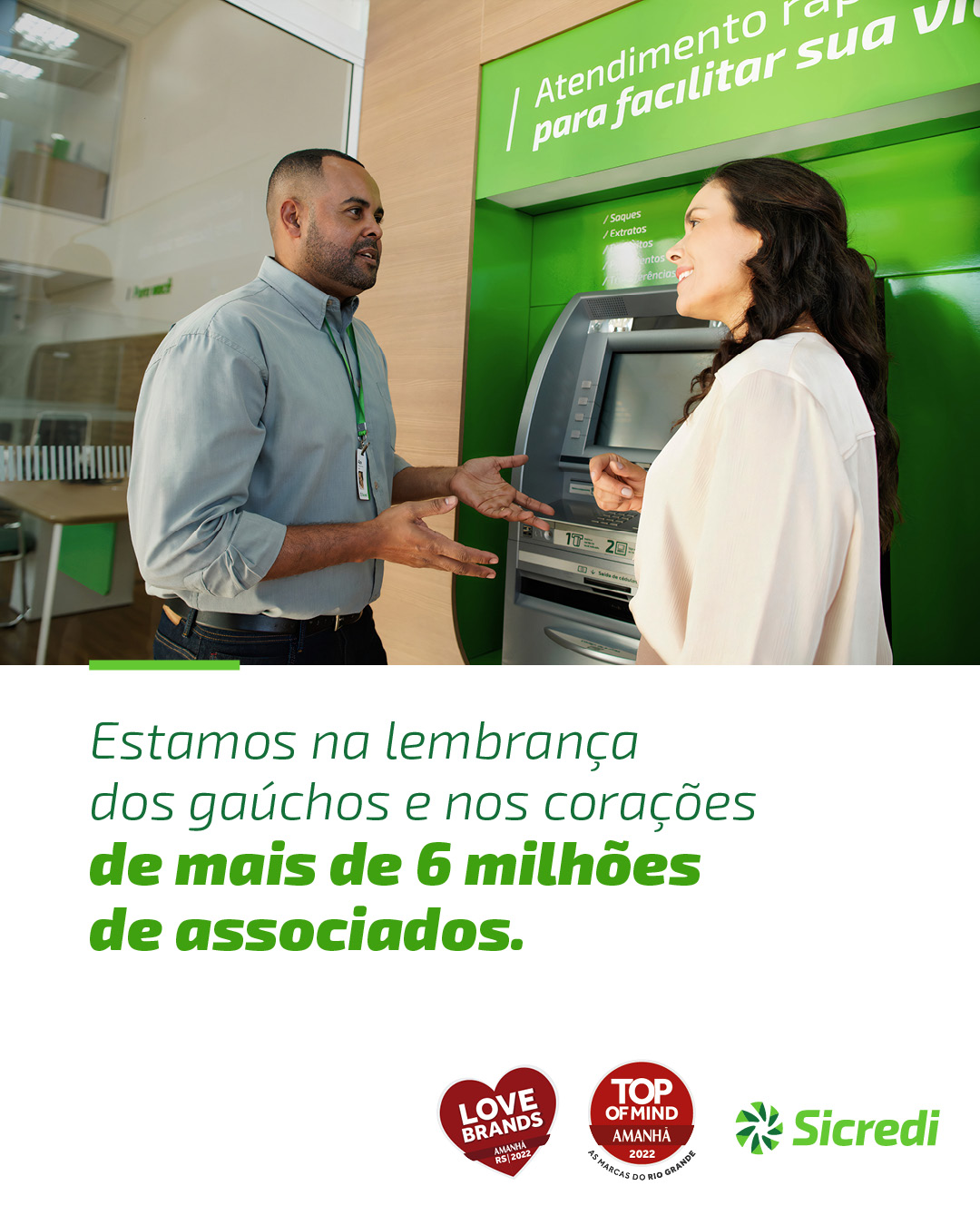 A instituição financeira cooperativa é a mais lembrada pelos gaúchos entre as cooperativas de crédito e uma das marcas premiadas com o Love Brands RS