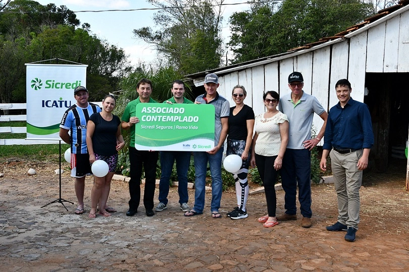 Na segunda-feira, 24, o associado foi surpreendido em sua residência, pelo gerente local, Clóvis Luiz Strehl; pelo representante da Icatu Seguros, Vinícius Raguzoni Müller; e pelos colaboradores da Cooperativa. A comitiva chegou com a Agência Móvel, e comemorou a entrega da premiação de R$ 47.076,22 mil com o contemplado e seus familiares.