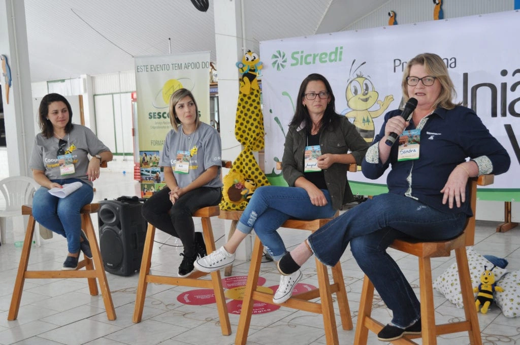 Houveram ainda depoimentos de pessoas que vivenciam o PUFV nos municípios das Cooperativas promotoras do encontro. O protagonismo jovem foi destaque na conversa com alunas de Cooperativas Escolares: Maria Rosa e Maria Eduarda (Cooperativa Escolar Verde Vale, da EMEF Nero Pereira de Freitas, de Vale Verde) e Luani dos Santos (Cooperativa Escolar União e Trabalho, da EMEF Marcílio Dias, de Victor Graeff).
