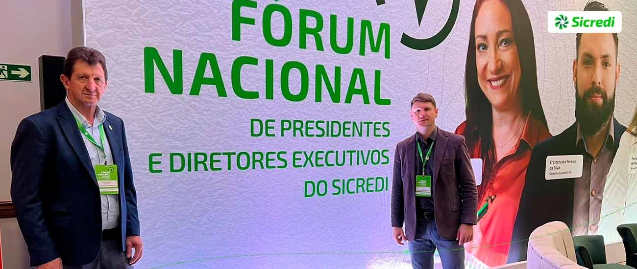 O presidente da Sicredi Parque das Araucárias PR/SC/SP, Clemente Renosto, e o diretor-executivo da Sicredi Parque, Fábio Burille, participaram nos dias 13 e 14 de setembro, em Foz do Iguaçu, do Fórum Nacional de Presidentes e Diretores Executivos. O evento reuniu aproximadamente 270 lideranças, entre representantes das mais de 100 cooperativas, cinco centrais e do Centro Administrativo Sicredi (CAS), além de conselheiros de administração da SicrediPar.
