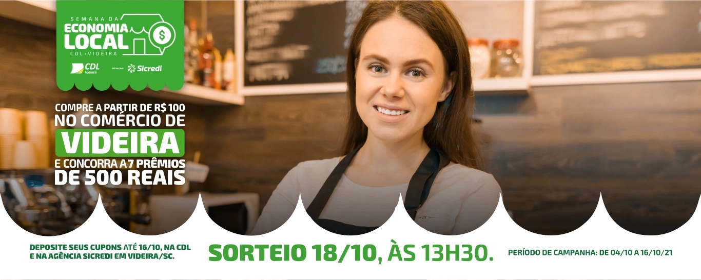 A Sicredi Parque das Araucárias PR/SC/SP promoverá a Semana da Economia Local em Videira (SC). Realizada em parceria com a Câmara dos Dirigentes Lojistas (CDL), a campanha tem o objetivo de estimular as compras no comércio local.