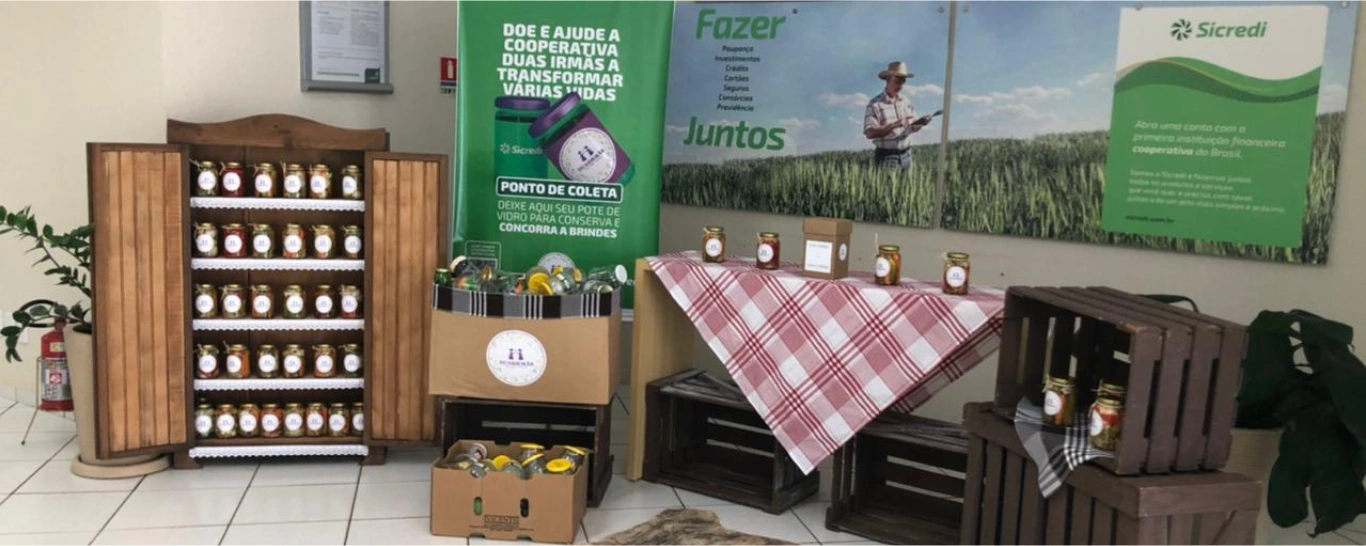 A Sicredi Parque disponibilizou um espaço na agência local para que fosse montado um estande da cooperativa, que confecciona e comercializa conservas de legumes. No estande os associados e o público em geral podem realizar a doação de potes de vidro, além de adquirir os produtos feitos pela Duas Irmãs, Duas Famílias.