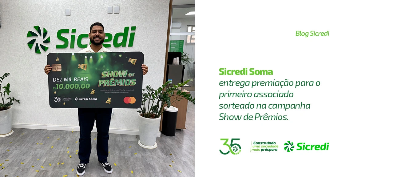 Sicredi Soma entrega premiação para o primeiro associado sorteado na campanha Show de Prêmios