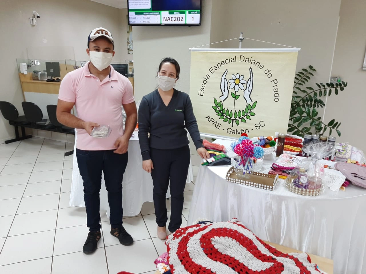 A equipe de colaboradores da agência da Sicredi Parque das Araucárias PR/SC/SP no município de Galvão (SC) realizou recentemente uma feira com artesanato criado pelos alunos da Apae. Promovida entre os meses de julho e agosto, a feira foi organizada para estimular o trabalho da escola, contribuir para sua sustentabilidade e também divulgar os produtos e serviços do Sicredi.