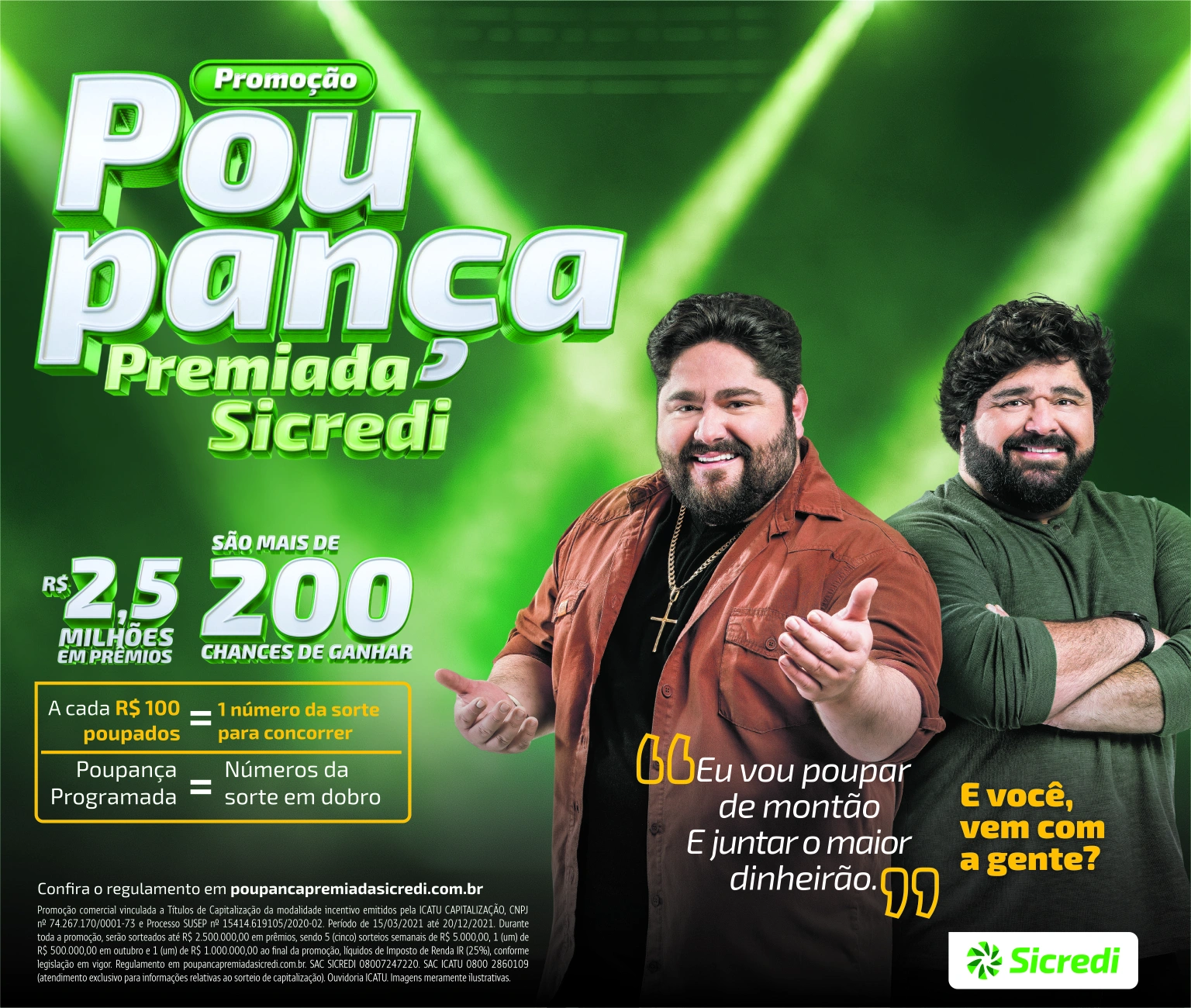 “Essa é uma das maiores promoções em andamento no país, com mais de R$ 2,5 milhões distribuídos em 202 sorteios. E sabemos que a poupança é uma modalidade extremamente popular no Brasil, utilizada por todas as classes sociais e perfis de público. Por isso, partimos da ideia de associar a campanha ao ritmo sertanejo que, assim como a poupança, faz muito sucesso no país. Ainda tivemos a felicidade de contar com a ajuda de uma dupla querida e pelo público e que ainda conhece na prática os diferenciais do cooperativismo de crédito e do Sicredi. Queremos que a mensagem sobre a importância de poupar e iniciar a sua reserva financeira contagie nossos associados”, ressalta o gerente de Marketing da Central Sicredi PR/SP/RJ, Rogério Leal.