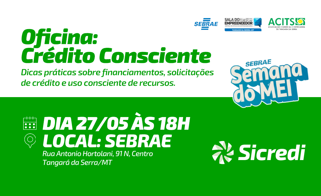 Programação começa em 26 de maio, em Tangará da Serra, com atendimento ao público e orientações sobre uso estratégico do crédito.