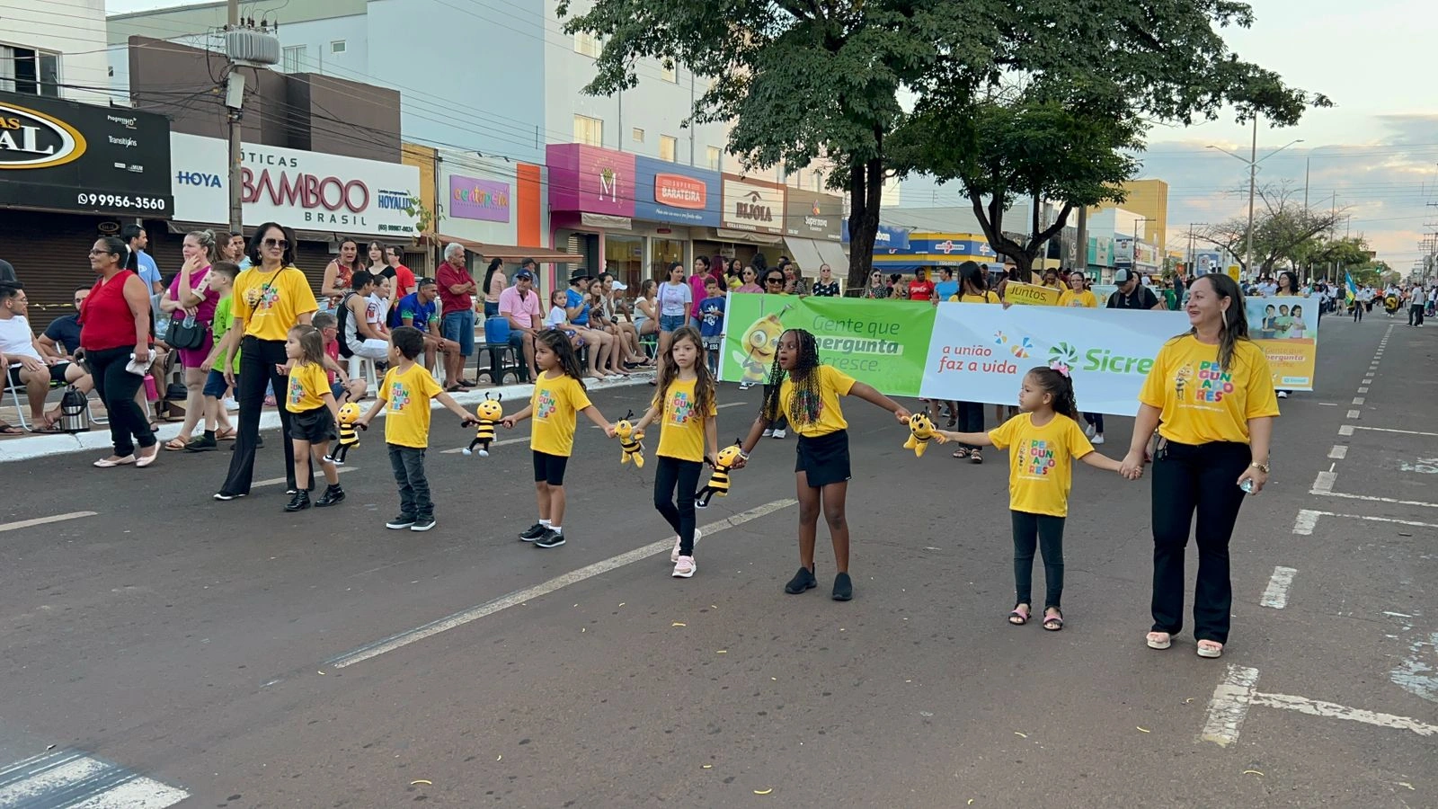 No último domingo, dia 21, uma abelha encantadora a atenção das pessoas que assistiam ao Desfile Cívico na Avenida Brasil em comemoração aos 47 anos de Tangará da Serra. Ela é a mascote do Programa A União faz a Vida, desenvolvido pelo Sicredi em parceria com a Prefeitura Municipal e presente em 8 escolas de Tangará. Como as abelhas, nos unimos para fazer a diferença em nossa sociedade.