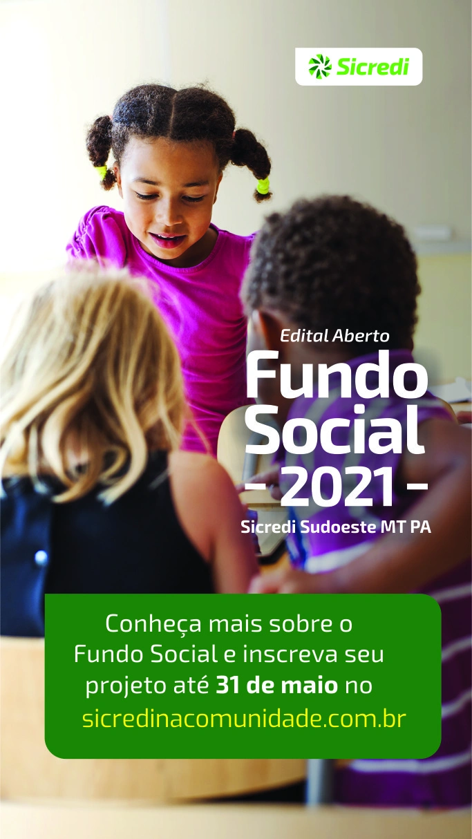 Na sexta-feira (30/4) a Sicredi Sudoeste MT/PA lançou o edital de abertura das inscrições dos projetos de entidades, atividades e projetos que gerem benefícios e melhorias nas comunidades em que atuam, através do Fundo Social Sicredi. O Fundo Social tem por objetivo fortalecer ações desenvolvidas pelas entidades que sejam associadas à cooperativa, evidenciando as causas da Cidadania Corporativa do Sicredi: Cooperação, Educação e Desenvolvimento local e este ano, Saúde.