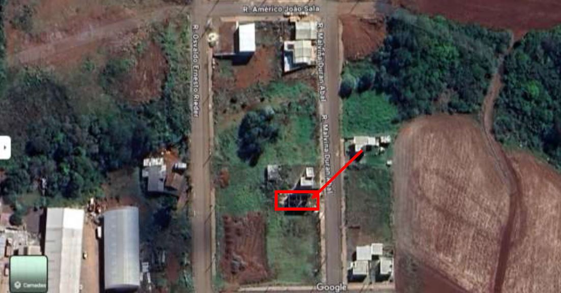 Lote urbano situado no bairro Maria Clara. Área de 360,08 metros quadrados com benfeitorias inacabadas.