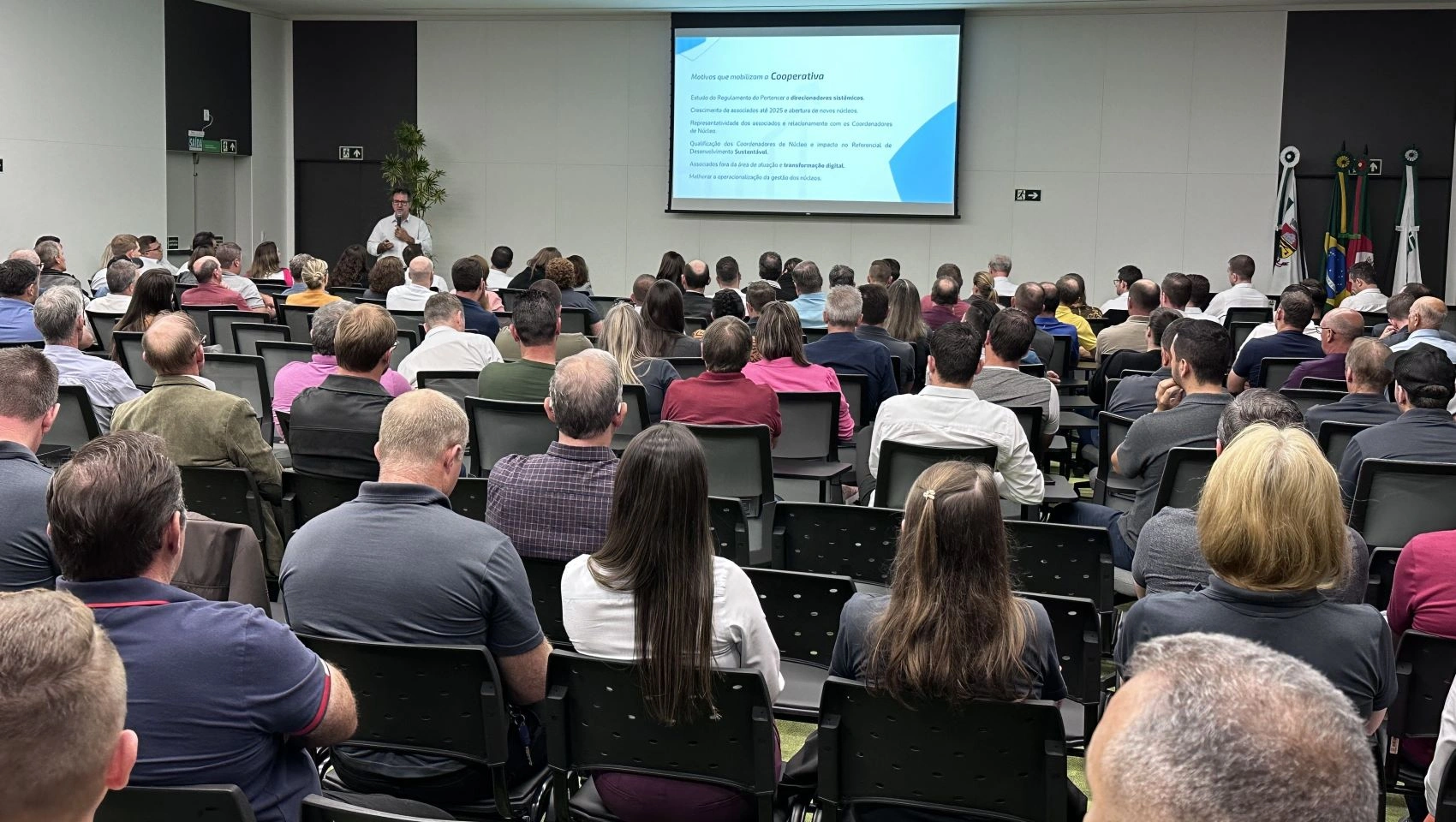 Na noite desta terça-feira (10/10), aconteceu o último Encontro Regional de Coordenadores de Núcleo da Sicredi UniEstados. No Espaço Cooperar, em Erechim, mais de 200 pessoas entre coordenadores efetivos, suplentes e representantes de agências estiveram reunidas para discutir questões relacionadas a cooperativa e projeções futuras. Também aconteceram outros dois Encontros, sendo um no dia 03/10, no Espaço Cooperar, e outro no dia 28/09, em Poços de Caldas. Ambos reuniram mais de 100 representantes, abrangendo, dessa forma, a totalidade dos coordenadores de núcleo da cooperativa após as três reuniões.