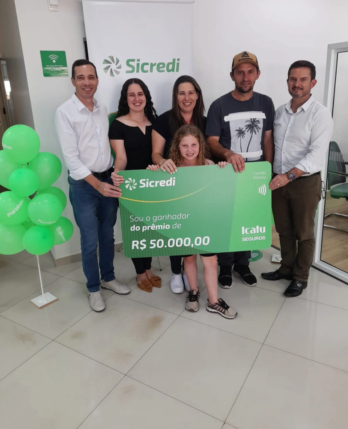 O associado da Sicredi UniEstados, Junior Cesar Crul, da agência de Ipira/SC, foi contemplado com R$ 50.000,00 por meio de um sorteio promovido pela ICATU, uma das seguradoras parceiras do Sicredi. Esse é um benefício oferecido a associados que possuem algum produto ou serviço das diversas linhas de seguros dispostas pela cooperativa. A entrega simbólica aconteceu na última sexta-feira na Agência de Ipira, contando com a presença do vice-presidente da Sicredi UniEstados, Luis Carlos Caramori, do gerente da Agência Charlei Suzin e de colaboradores.