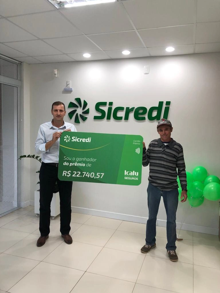 A Sicredi UniEstados realizou nesta semana, a entrega de mais um prêmio de Seguro de Vida, no valor de R$ 22.740,57. O contemplado foi o associado Evaldo Henrique Gebauer, morador de Itá/SC, que teve o número de sua apólice sorteado pela Loteria Federal. Por meio dos seguros de vida oferecidos pelo Sicredi, em parceria com a Icatu Seguros, os segurados podem ganhar o equivalente ao capital segurado em vida, por meio quatro sorteios mensais.