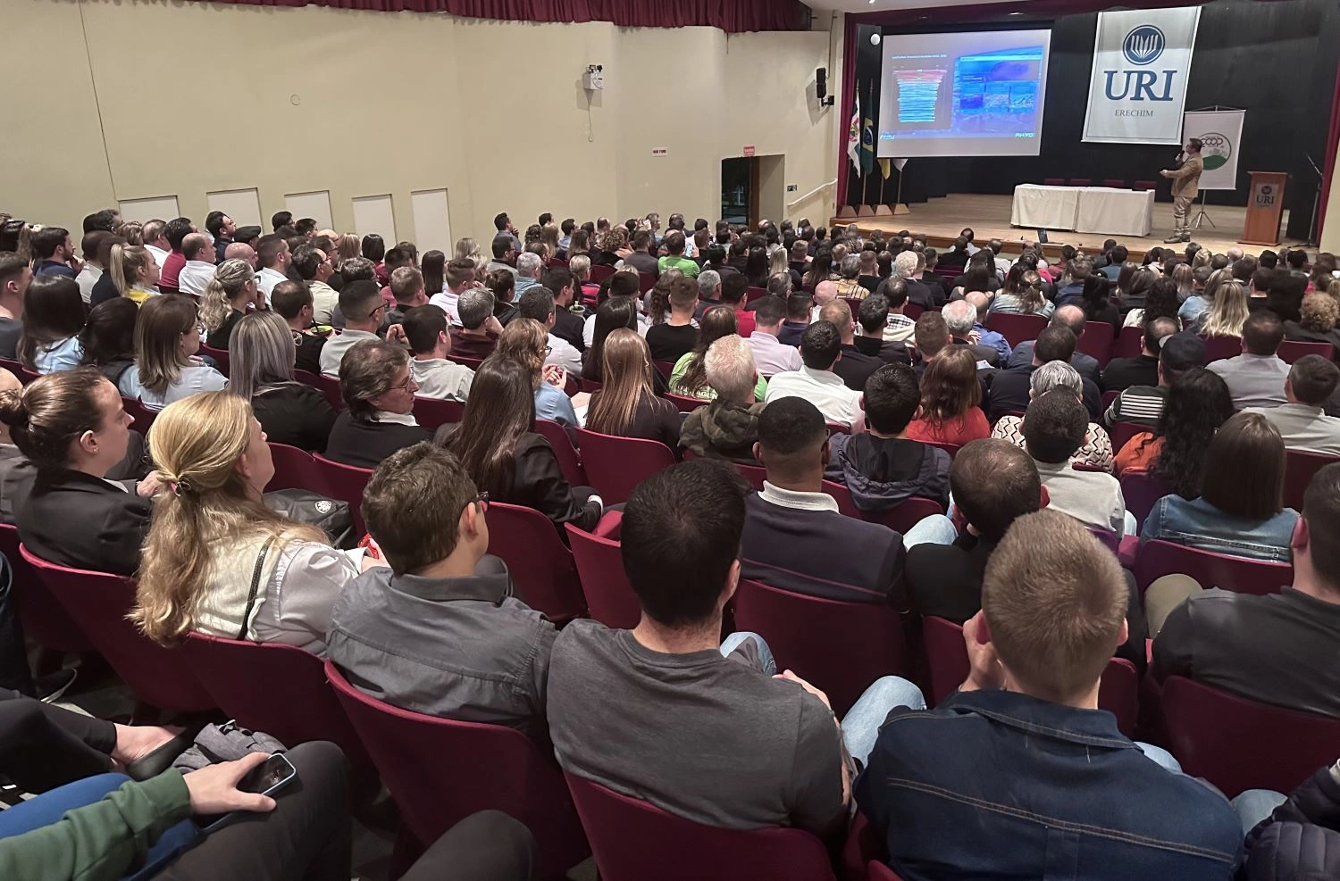 Cerca de 400 pessoas participaram XI Simpósio de Cooperativismo do Alto Uruguai, realizado no Salão de Atos da URI Erechim na noite desta quinta-feira (05/10). O evento, promovido pelo Núcleo de Cooperativismo do Alto Uruguai, teve o mercado de carbono neutro como tema principal.
