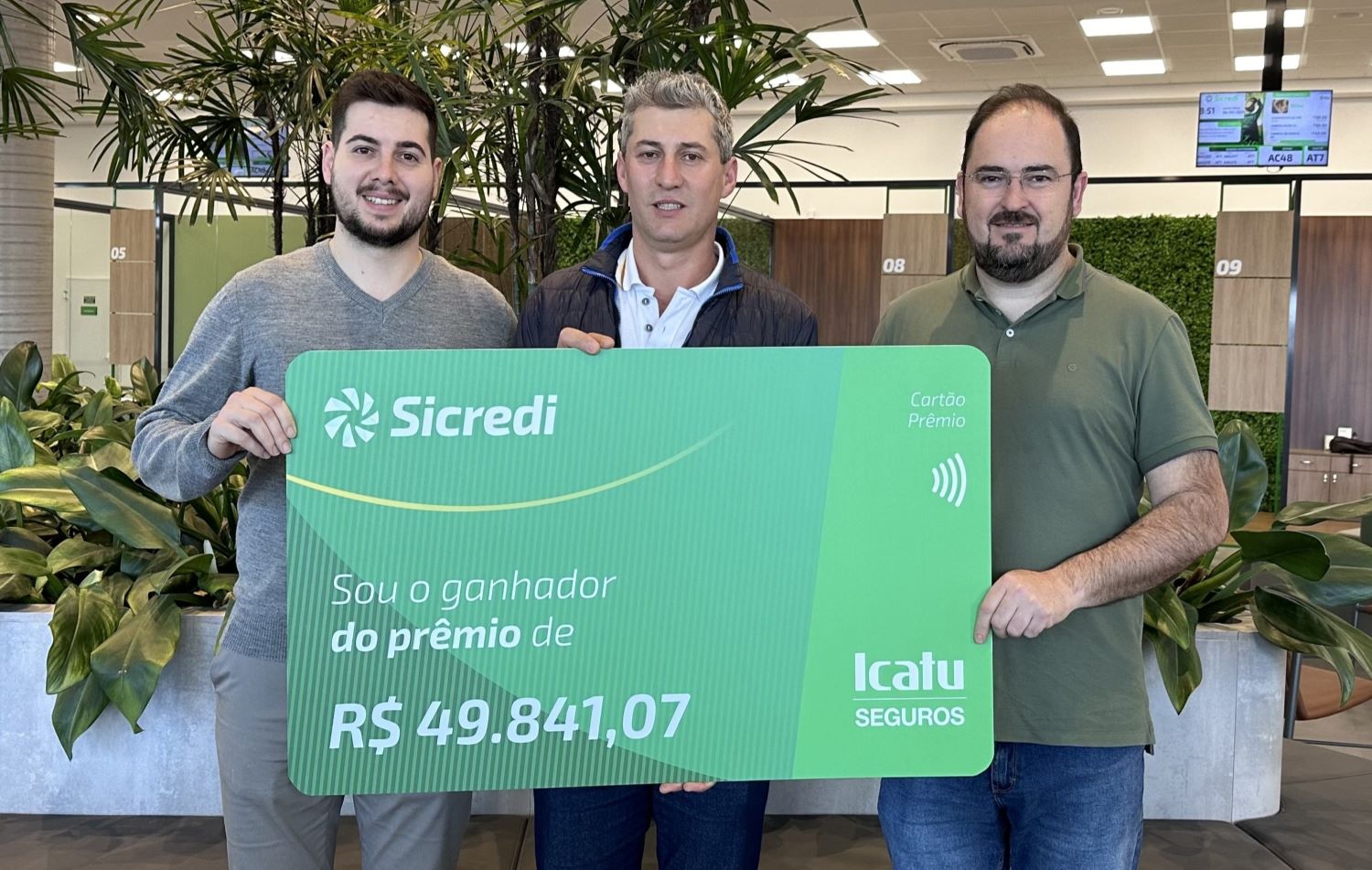 Entrega surpresa mobilizou equipe da agência e emocionou o cooperado premiado