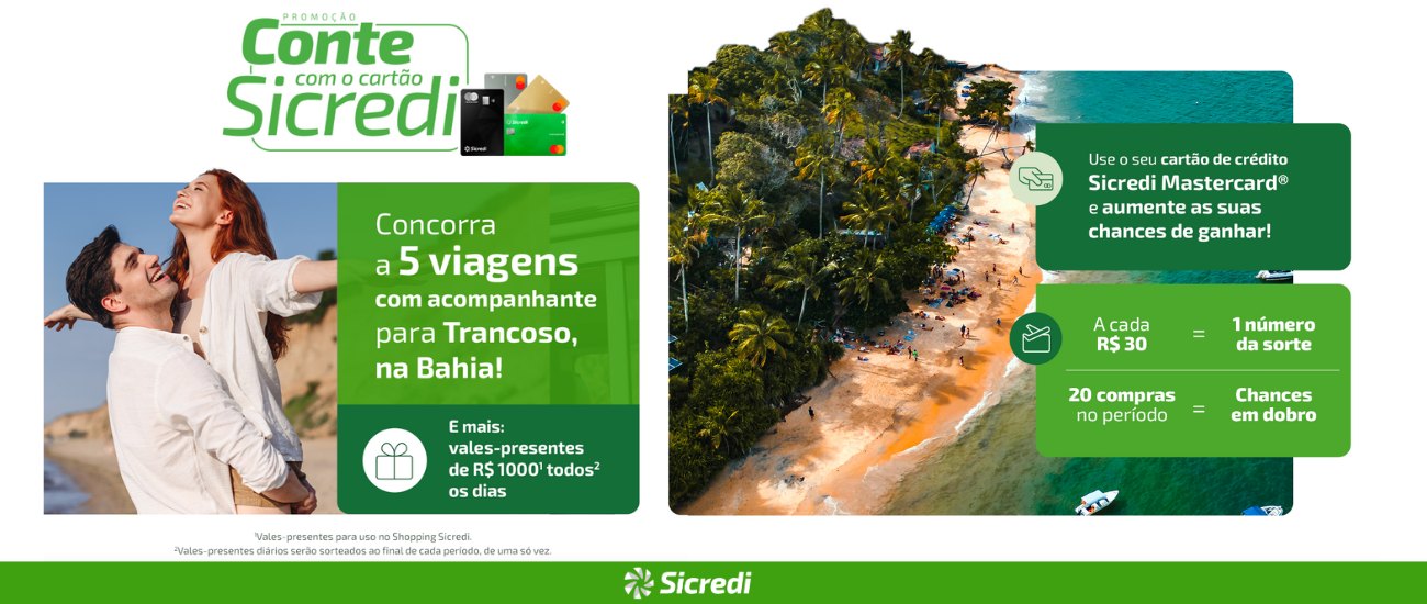 Com cartões de crédito você realiza suas compras e concorre a prêmios.