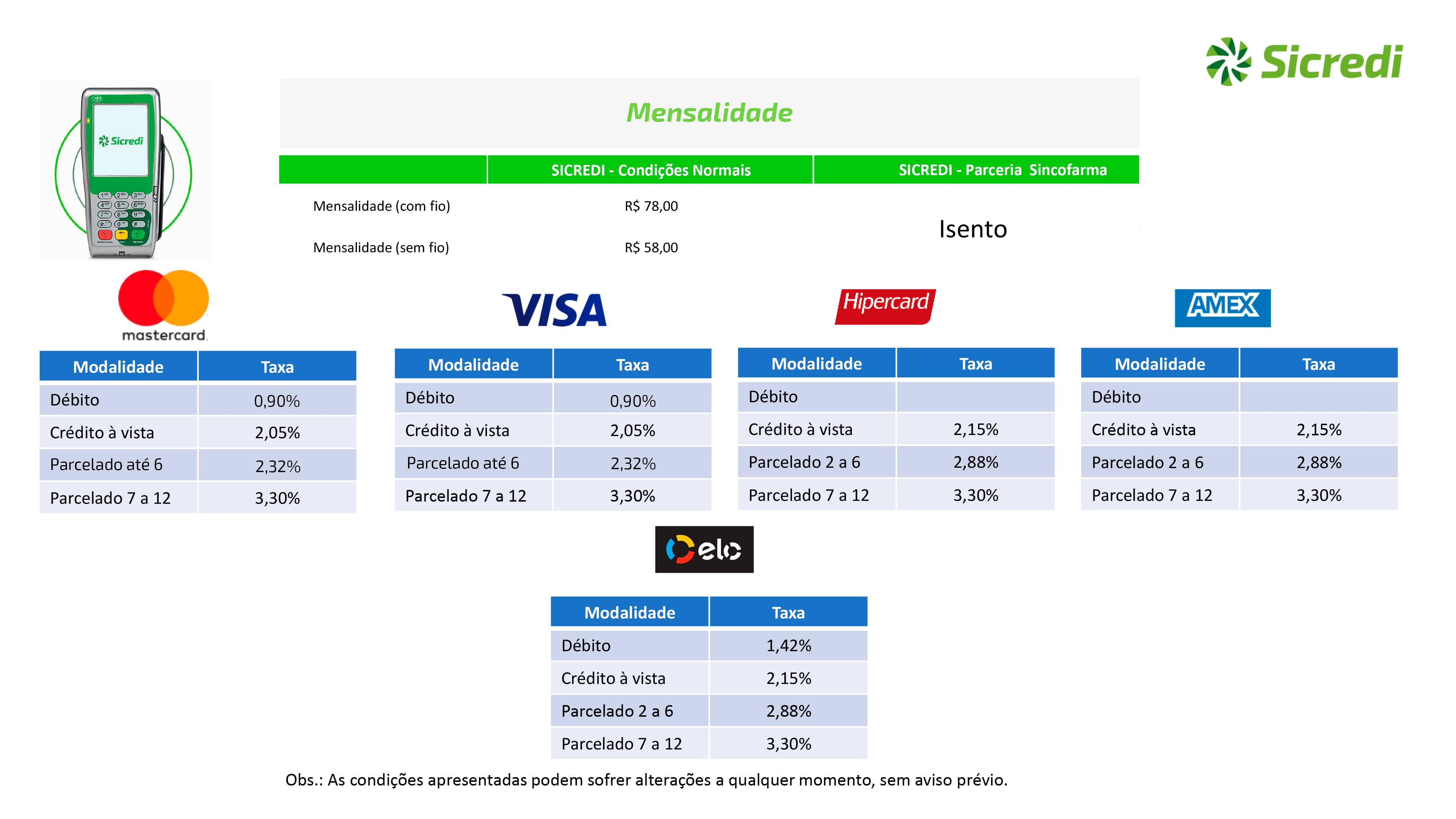 (Duplicatas) Condições Normais Média R$ 2,98% a.m. Parceria SINCOFARMA A partir de R$ 1,80 a.m.