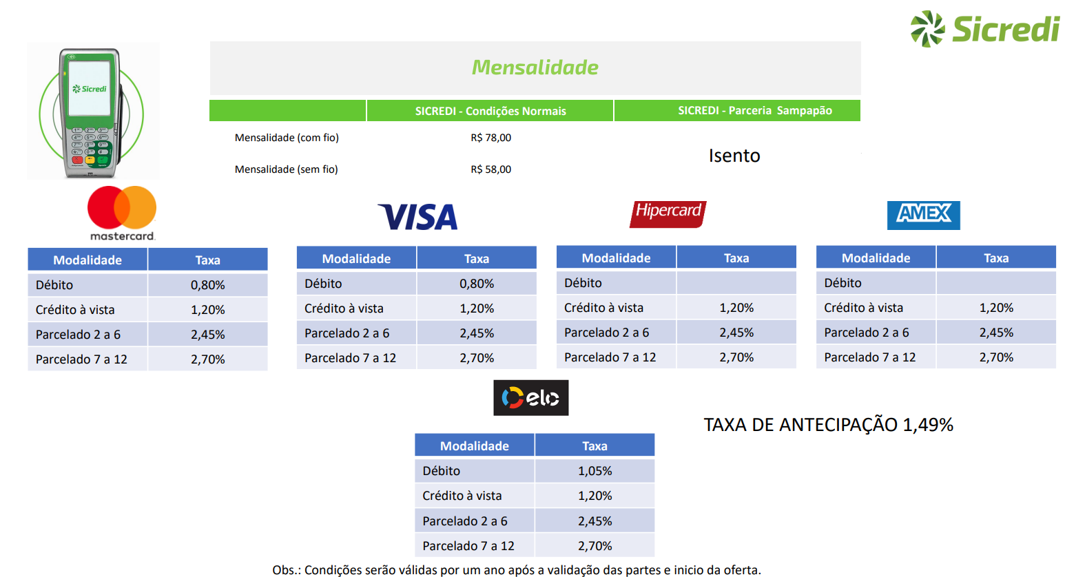 (por boleto emitido - emissão e postagem cooperativa) API, Ecommerce e Internet Banking Condições Normais Média R$ 5,50 Parceria SINCOPEÇAS R$ 3,40