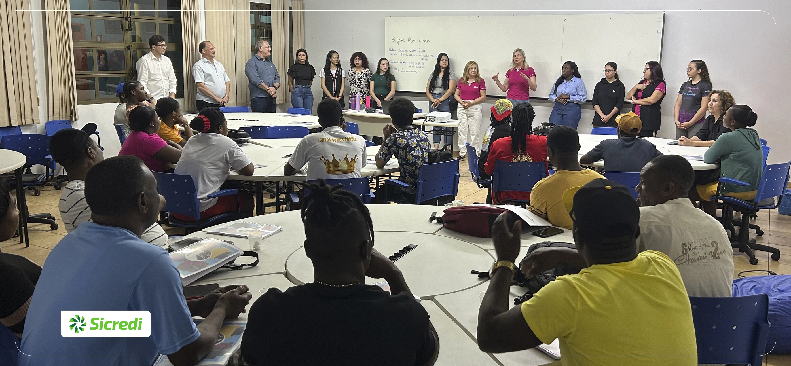 A Sicredi Vale do Piquiri Abcd PR/SP, por meio do Comitê Mulher e em parceria com a Rede Multiversa – um ecossistema de aprendizagem e inovação –, deu início a um curso de língua portuguesa voltado para estrangeiros. Com foco em ampliar os conhecimentos gramaticais, de leitura e oralidade dos participantes, o projeto pretende facilitar a inserção desses imigrantes no mercado de trabalho e no cotidiano brasileiro. A turma conta com 20 alunos, de diferentes nacionalidades, e terá duração de 40 horas.