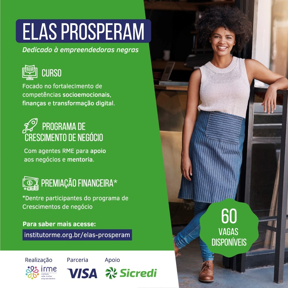 Com o objetivo de fomentar o empreendedorismo e a educação financeira para mulheres, o Sicredi está apoiando o programa “Elas Prosperam”, iniciativa promovida em parceria com a Visa e o Instituto Rede Mulher Empreendedora, para apoio e desenvolvimento de 60 empreendedoras autodeclaradas negras. As inscrições para participar do projeto se encerram no dia 28 de março.