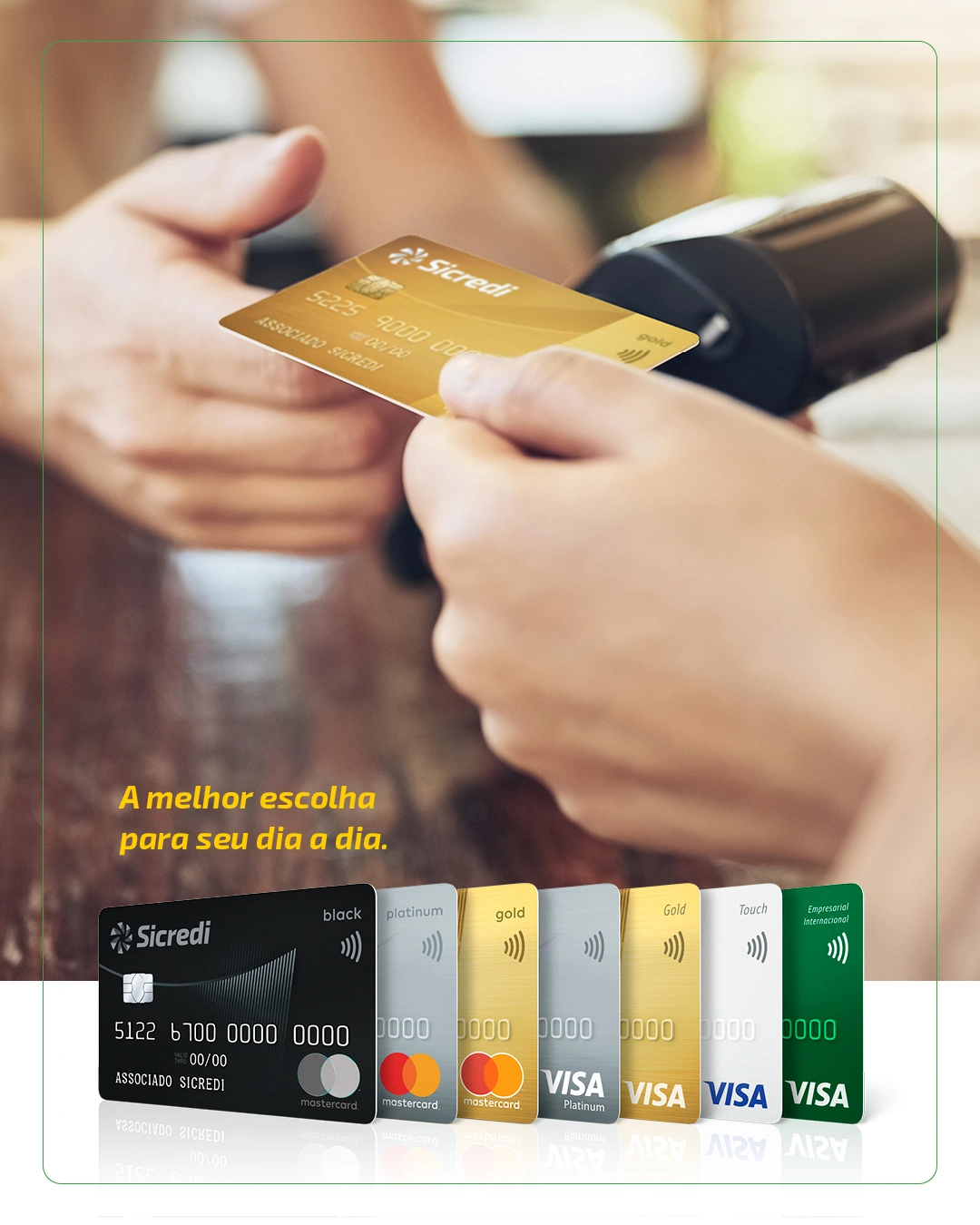 O Sicredi deu início a emissão de cartões em 2001 e, ao longo dos quase 20 anos de atuação, a instituição tem disponibilizado aos seus associados um portfólio completo de soluções, tanto para pessoa física quanto jurídica. Além disso, vem investindo em canais digitais, buscando a melhor experiência e conveniência para seus associados. Em seus programas de recompensas, possibilita resgates via Latam Pass, TudoAzul, Smiles e em uma plataforma própria, com opções de produtos, serviços, viagens e cashback em fatura.