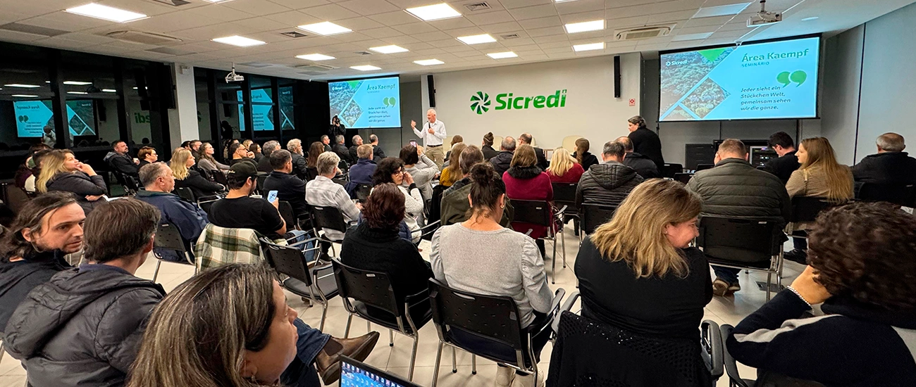 A força do cooperativismo marcou a discussão sobre o futuro da antiga área do Kaempf. Nesta terça-feira, 17 de junho, a Sicredi Vale do Rio Pardo reuniu na sede administrativa da instituição, em Santa Cruz do Sul, mais de 100 pessoas de diversas áreas, como ambiental, cultural, educacional, arquitetônica, turística, empresarial, entre outras. A adesão ao seminário confirmou o interesse da comunidade e reforçou o papel da iniciativa como espaço de diálogo, troca de ideias e compartilhamento de sugestões sobre o destino do terreno e das edificações.