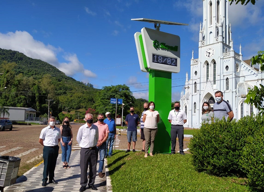 Na manhã desta quinta-feira, 18 de fevereiro, mais um município com agência da Sicredi Vale do Rio Pardo inaugurou um relógio digital com a marca da cooperativa. O equipamento, instalado na Praça Imigrante, no centro da cidade, indica a hora, temperatura, transmite informações de utilidade pública e funciona por meio de energia fotovoltaica. "Este equipamento é uma conquista da comunidade sinimbuense, viabilizada pelos associados que operaram com a Cooperativa. É uma forma da Cooperativa desenvolver seu compromisso social. A Sicredi também evoluiu neste protagonismo de desenvolver um equipamento com ligação na energia limpa. Com alegria eu venho aqui entregar o relógio para Sinimbu, nosso grande parceiro", destacou o presidente da Sicredi VRP, Heitor Álvaro Petry.