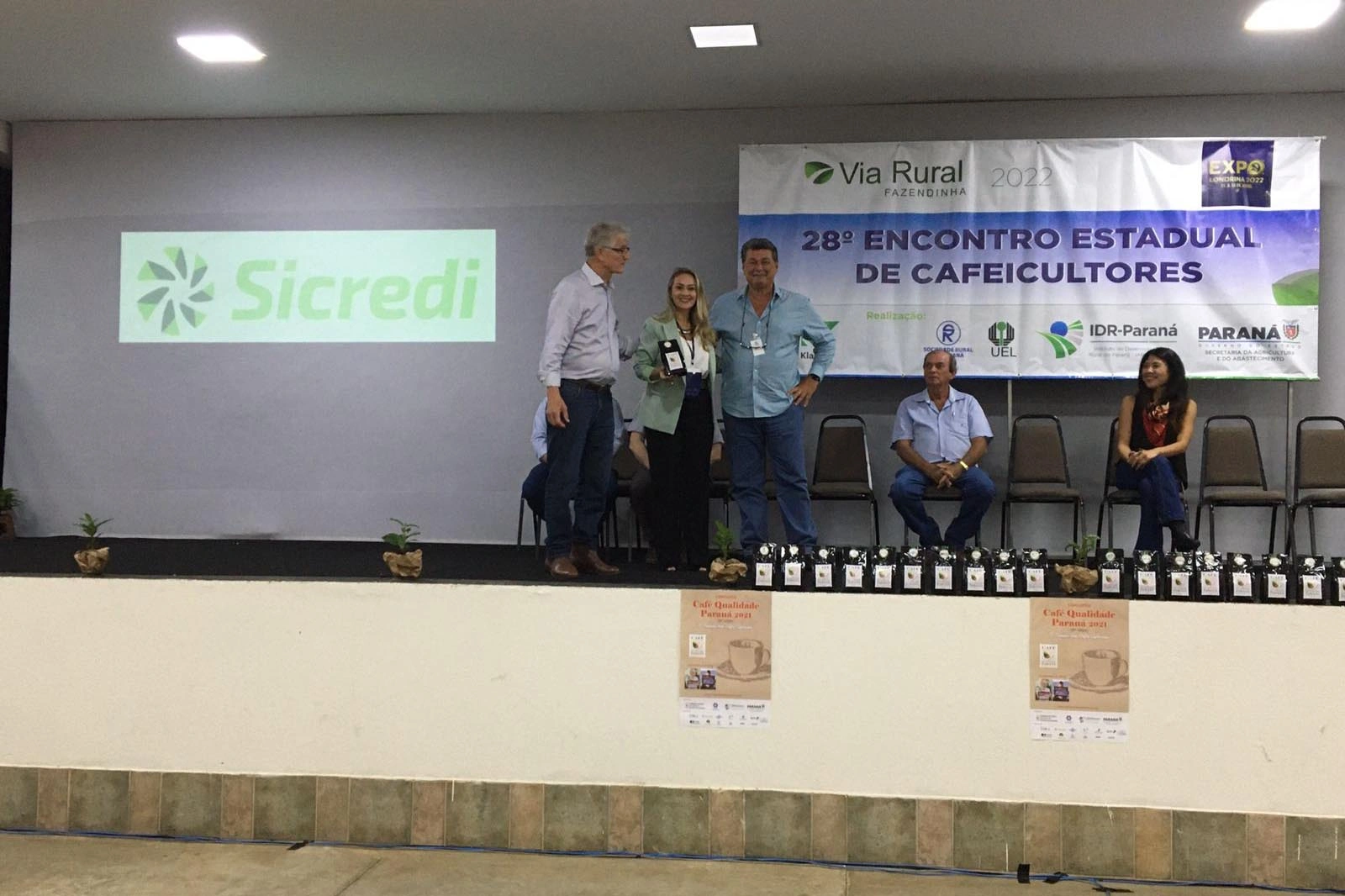 Com raízes no campo e uma longa parceria com o produtor rural, o Sicredi participou do 28.º Encontro Estadual de Cafeicultores, realizado na última quinta-feira (7), no Parque de Exposições Ney Braga, em Londrina (PR). O evento, que tratou sobre o fortalecimento da produção cafeeira paranaense, contou com a presença do secretário de Agricultura e do Abastecimento do Paraná, Norberto Ortigara, e dos patrocinadores masters da 19.ª edição do Concurso Café Qualidade Paraná, que receberam os lotes vencedores da premiação realizada em 2021.