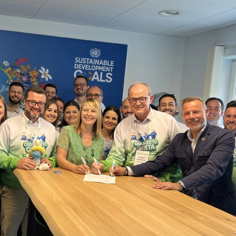 Com o objetivo de fortalecer ainda mais a promoção da Agenda 2030 e das metas propostas pela Organização das Nações Unidas para um mundo melhor, o Sicredi renovou, na última segunda-feira (28), o Projeto Sicredi & Smurfs: juntos pelo desenvolvimento sustentável. Uma comitiva da instituição financeira cooperativa viajou para Bruxelas, onde foi recebida na sede da ONU, e visitou o Estúdio dos Smurfs, localizado na capital belga. No local são desenvolvidas as histórias das pequenas criaturas azuis que moram em casinhas com formato de cogumelo e enfatizam a importância da colaboração e da ajuda mútua.
