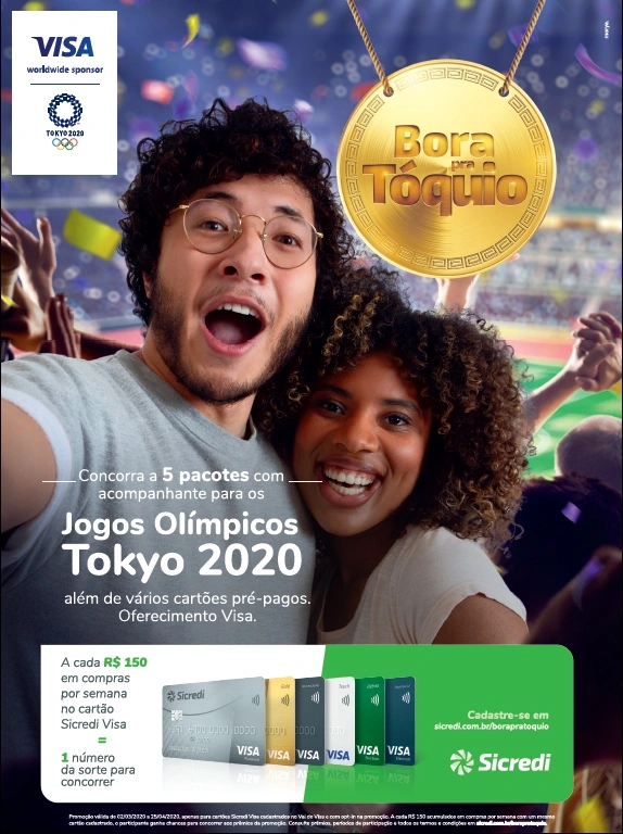 Para celebrar os Jogos Olímpicos Tokyo 2020, que acontecem entre julho e agosto no Japão, e fortalecer o relacionamento com os associados, a Visa, em parceria com o Sicredi – instituição financeira cooperativa com mais de 4,5 milhões de associados e atuação em 22 estados e no Distrito Federal – lança a campanha promocional “Bora pra Tóquio”. Na ação, os participantes concorrem a prêmios quinzenais de até R$ 1.000 em cartões pré-pagos, além de viagens para os Jogos Olímpicos oferecidas pela Visa.