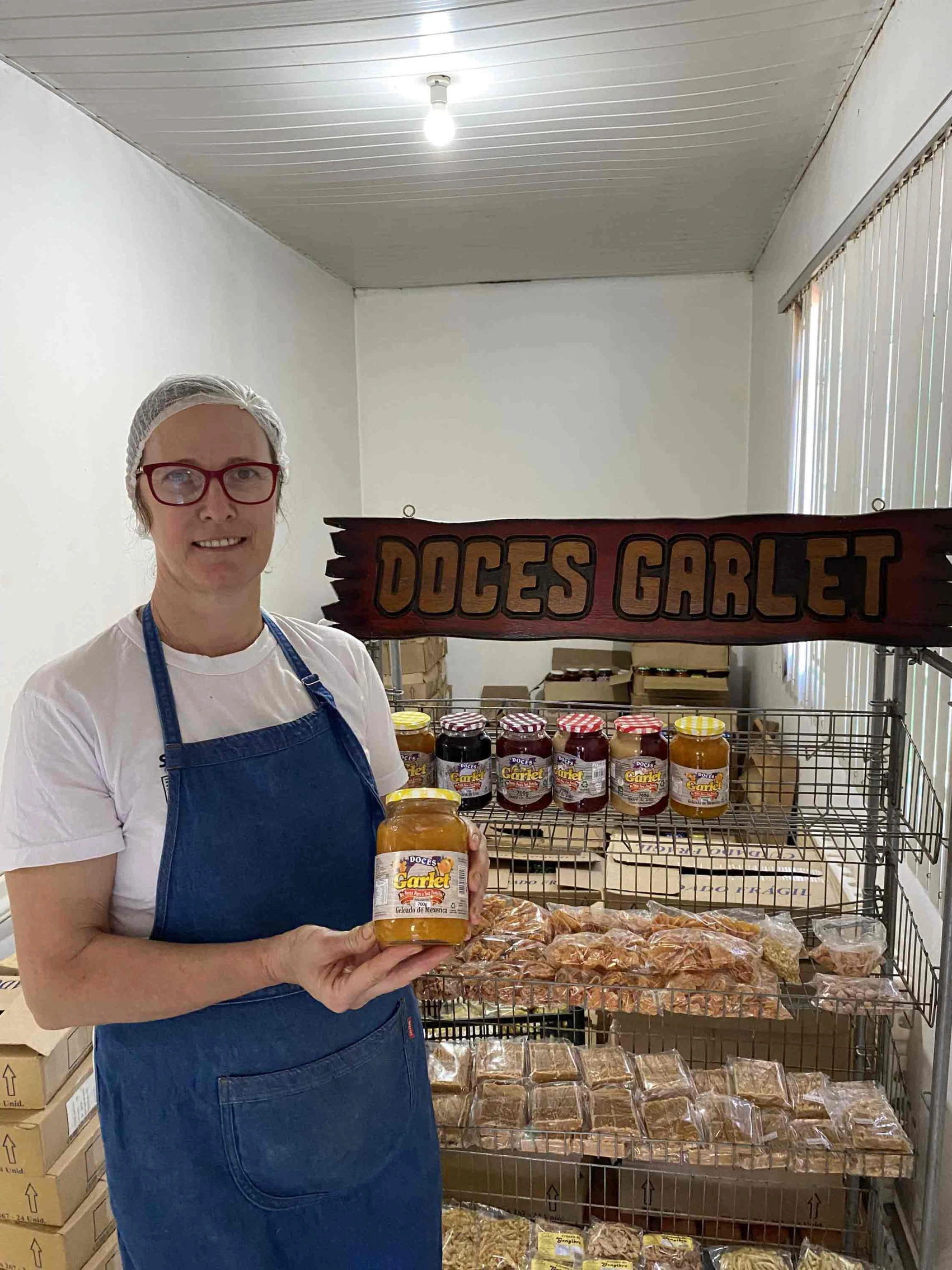 Associada Roseli Fátima Garlet Becker, com seus produtos da Doces Garlet