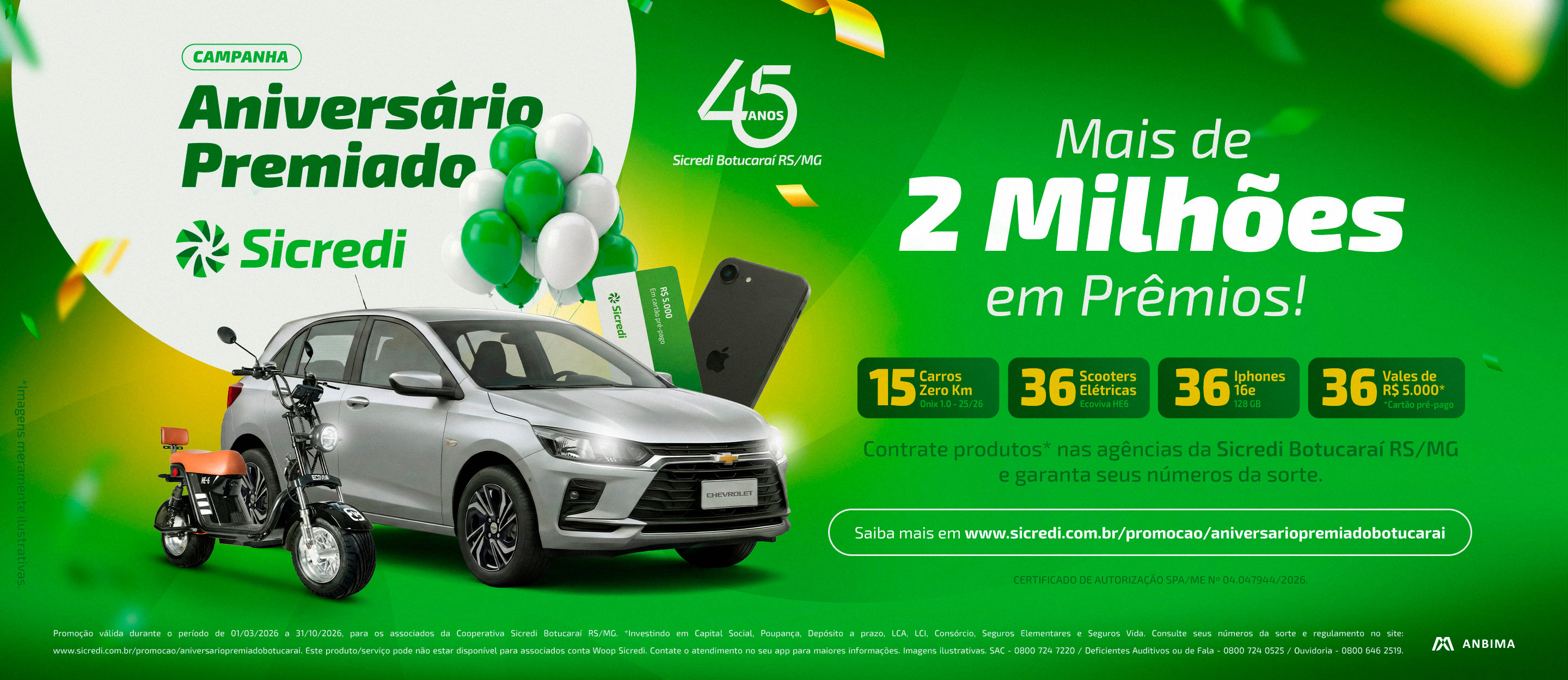 Associe-se a Sicredi Botucaraí RS/MGSão vários produtos participantes da promoção: Capital Social, Poupança, Depósito a prazo, LCA e LCI, Consórcio, Seguros Elementares e Seguro de Vida. Confira os critérios no regulamento. e realize as suas transações financeiras através dos produtos acima.