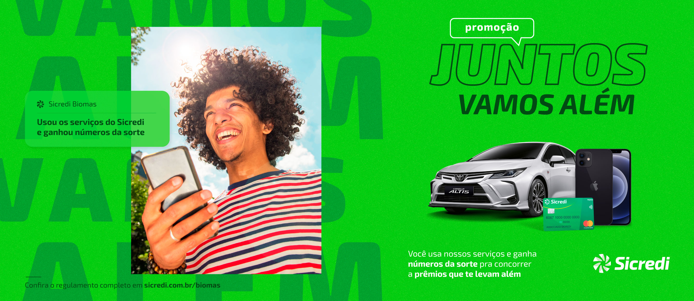 Participe e concorra a um iPhone por mês, e ao final da promoção, uma poupança de 8 mil reais e um Corolla Altis híbrido. Válido para todos os associados e poupadores da cooperativa Sicredi Biomas. Participe e concorra a um iPhone por mês, e ao final da promoção, poupanças de 8 mil reais e um Corolla Altis híbrido. Válido para todos os associados e poupadores da cooperativa Sicredi Biomas.