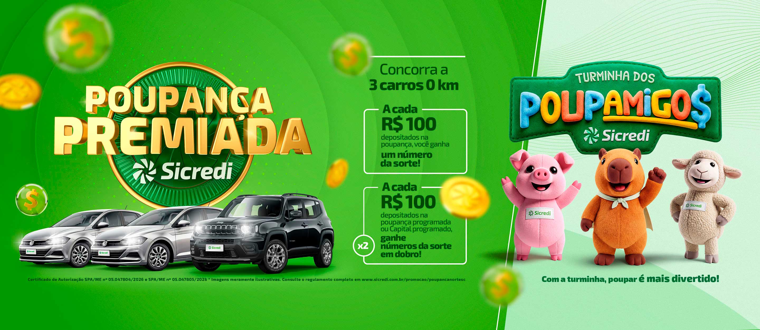 Consulte o regulamento completo aqui.Os mascotes da Poupança te ajudam a poupar a conquistar! A cada R$100,00 integralizados na Poupança ou no Capital Social você recebe 1 raspinha para concorrer. Achou a raspinha premiada? Leve um Poupamigo para casa!