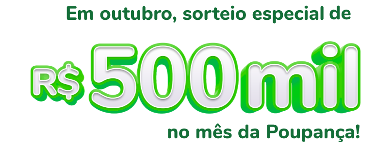 • Sorteio especial do Mês da Poupança no valor de quinhentos mil (R$ 500.000,00): 01/11/2025