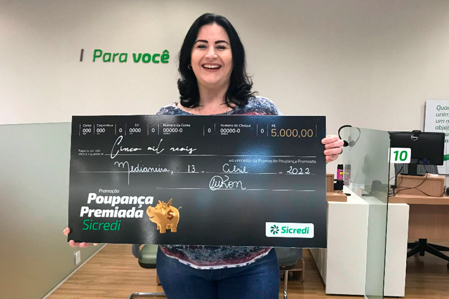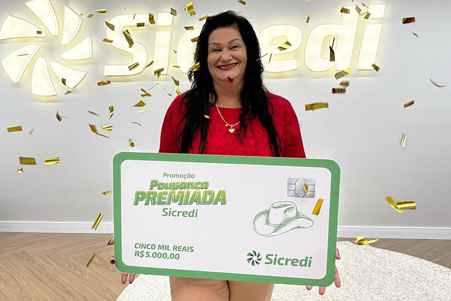 Mais uma ganhadora! Nossa associada da Sicredi Vanguarda PR/SP/RJ levou R$ 5 mil para casa. Poupe com o Sicredi e participe também.