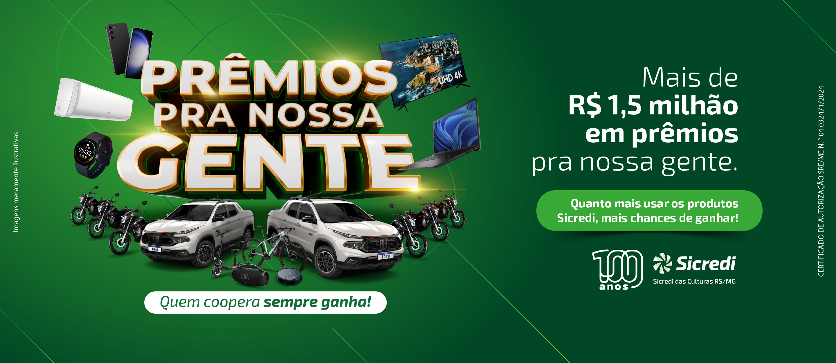 A campanha “Prêmios pra nossa gente” é destinada a todos(as) atuais e futuros(as) associados(as) da Sicredi das Culturas RS/MG, pessoas físicas e/ou jurídicas, primeiros titulares de conta corrente, assim como poupadores que não são associados(as), com exceção das pessoas impedidas listadas no regulamento, residentes em território nacional.