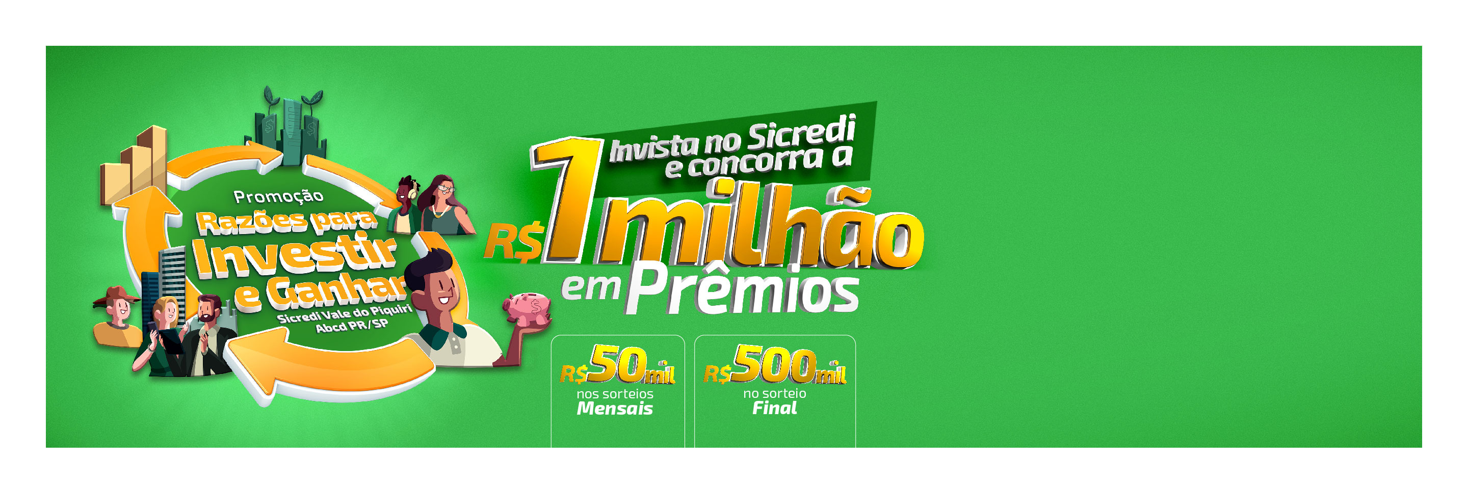 Aqui no Sicredi, seu investimento rende, você realiza seus propósitos, contribui para uma sociedade mais próspera e ainda concorre a prêmios!