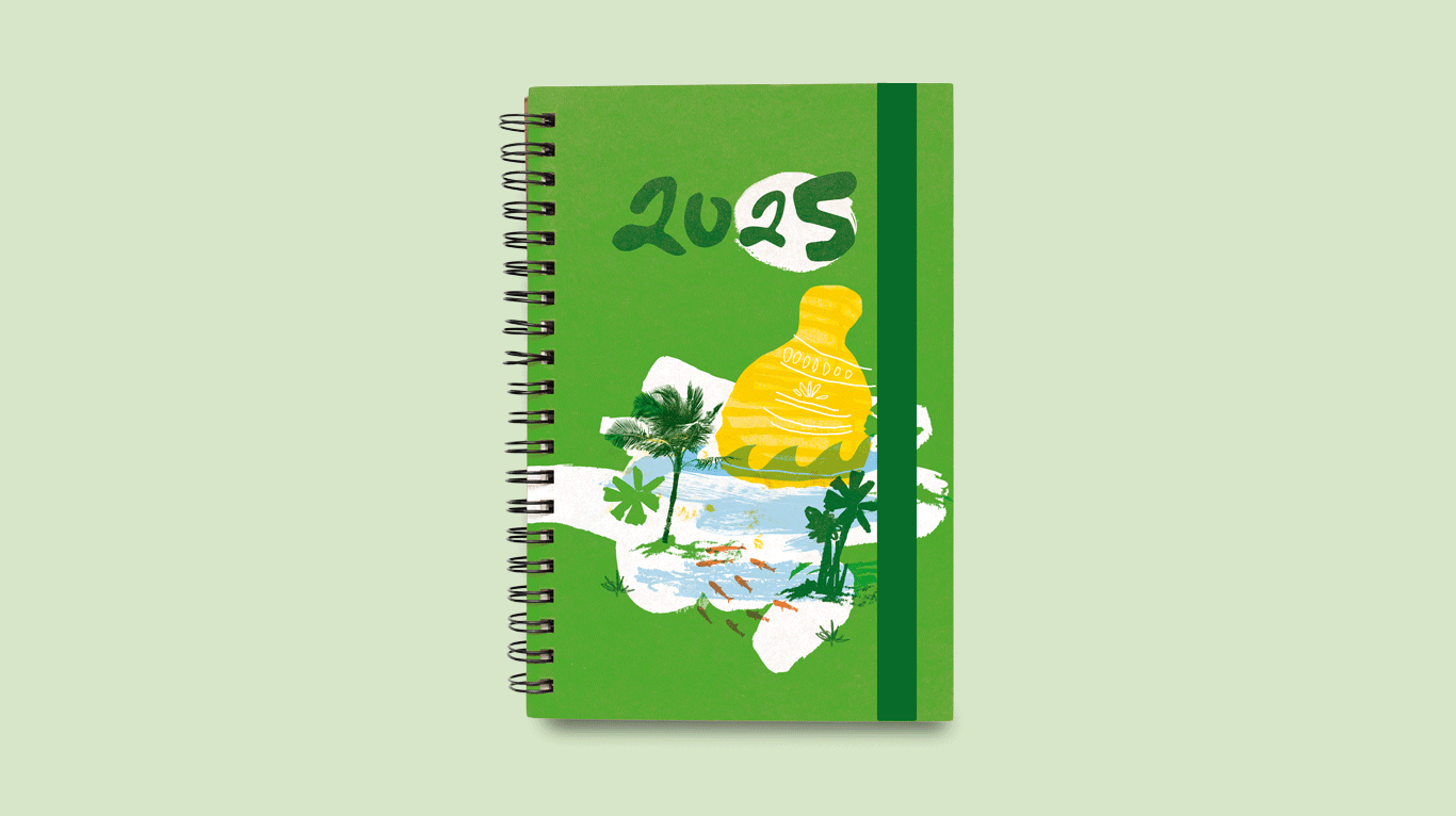 Com um olhar atento à coletividade e à diversidade do nosso país, desenvolvemos ilustrações exclusivas para nossas agendas e calendários. Estas artes são uma homenagem às diversas regiões do Brasil, capturando a riqueza cultural e a beleza natural do país. As ilustrações utilizam uma variedade de técnicas, incluindo aquarela, tinta, giz e fotografia, refletindo a multiplicidade de formas de expressão artística.