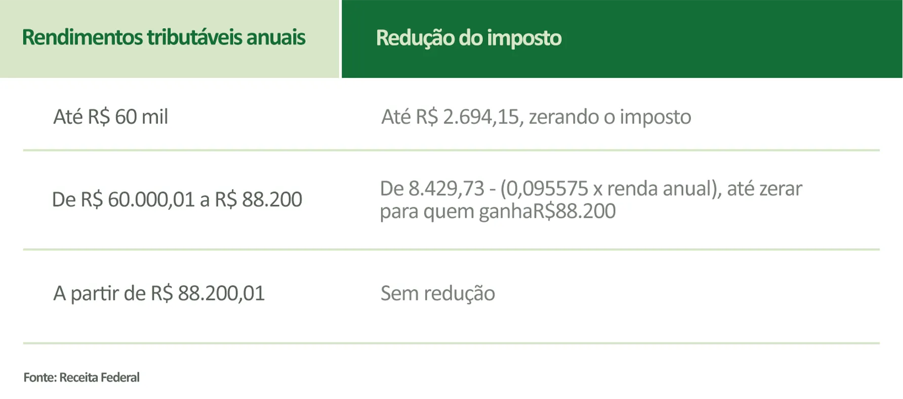 Quem ganha entre R$ 5 mil e R$ 7.350 terá uma redução no valor do imposto. Funciona assim: