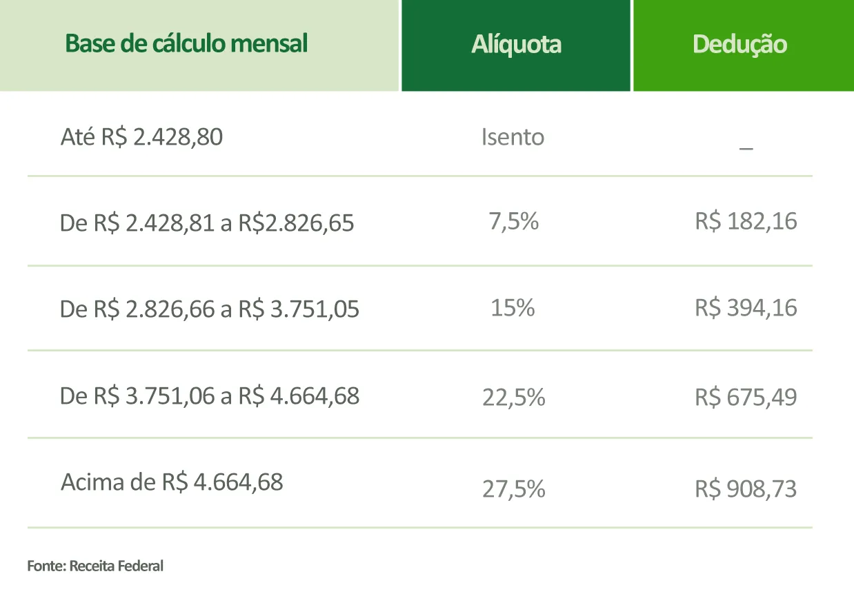 Para quem ganha acima de R$ 7.350 por mês, vale a tabela tradicional: