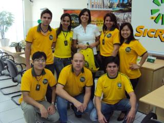 Durante a Promoção Dono da Copa Sicredi, promovida pelo Sicredi, dois associados da Sicredi Oeste SP foram premiados com um Kit torcedor. Para comemorar, os colaboradores da Unidade de Atendimento de Presidente Prudente organizaram uma recepção aos associados que foram receber seus prêmios. Nas fotos estão os colaboradores da cooperativa juntamente com os associados e ganhadores: Paulo José da Silva e Juliane Cavalli Vincoleto.