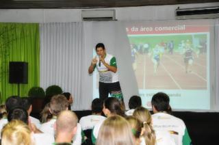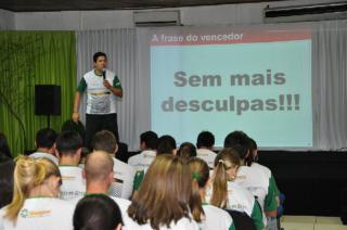 Palestrante fala aos colaboradores sobre mudança de atitude e desafios na empresa