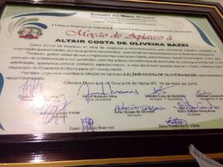 Gerente de Guarantã do Norte MT recebe Moção de aplauso