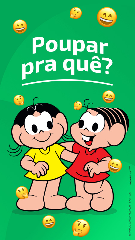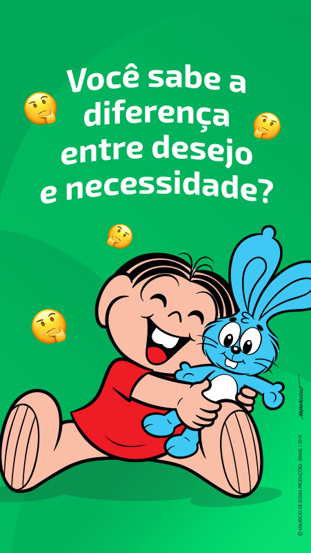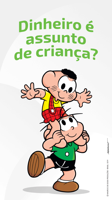 Para incentivar uma conversa leve e divertida sobre educação financeira, criamos, em parceria com a Mauricio de Sousa Produções, uma série temática de histórias da Turma da Mônica que explica pra criançada sobre a origem do dinheiro, orçamento familiar e como funcionam compras à vista ou a prazo. Além dos vídeos, temos vários conteúdos especiais que ajudam os pequenos a entender ainda mais sobre o assunto.